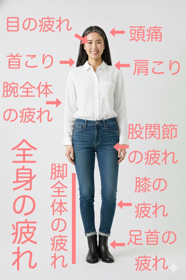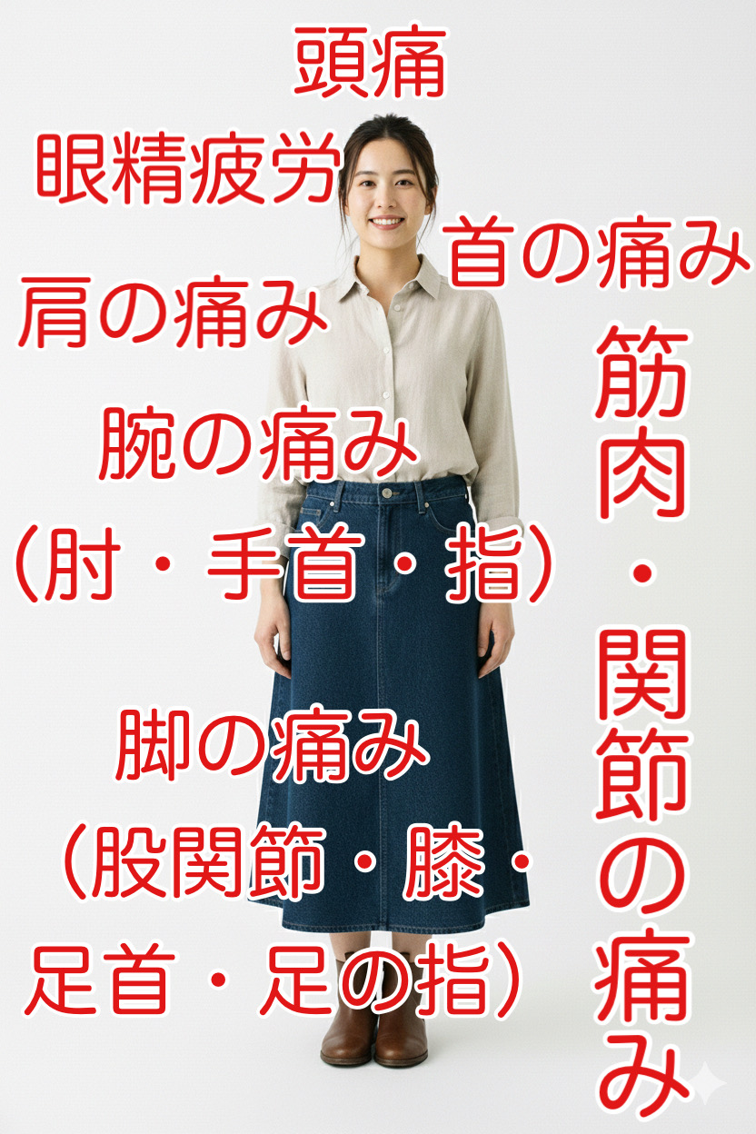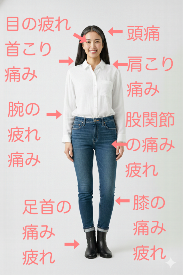 キツい肩こり、腰痛、ひざ痛、足のむくみ