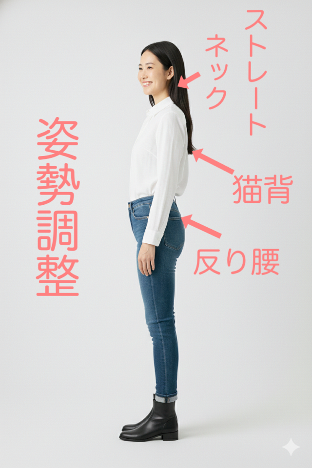 (背骨の捻れ、骨盤のずれ、首の骨のねじれがあったため調整をしました)
